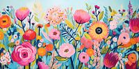 Dit werk straalt vreugde en levendigheid uit door een explosie van kleurrijke bloemen in een dynamische compositie. De felle tinten en speelse vormen brengen energie en een vrolijke sfeer in elke ruimte. Het is een perfecte keuze voor liefhebbers van botanische kunst met een eigentijdse twist, die op zoek zijn naar een werk dat positiviteit en creativiteit uitstraalt.
