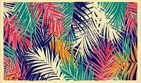 Dit trendy kunstwerk valt op door zijn levendige kleurenpalet en dynamische compositie van palmbladeren.