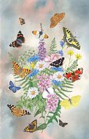 Fleurig boeket met wilde planten trekken vele soorten vlinders aan, zoals dagpauwoog, koninginnenpage, kleine vos, koolwitje, oranjetipje, keizersmantel