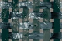 Collage en fotobewerking, portret in grijze en groene kleuren.
