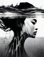 Conceptuele zwart-wit kunst met een oude grunge of korrel fotografie stijl met expressieve portretten en surrealistische taferelen.