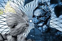 Fotografie en collage in wit en blauw.