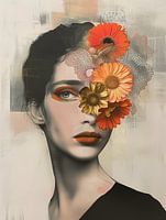 Een abstract portret van een vrouw in warme kleuren (met bloemen).