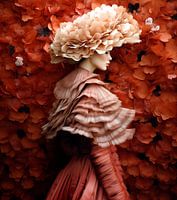 Fantasie profiel portret van een vrouw in roze en rood tinten