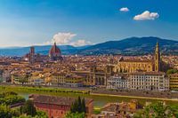 Deze foto met uitzicht over Florence in Italië is gemaakt op een middag in mei 2017 vanaf Piazzale Michelangelo. Florence is een prachtig stad in Toscane met een indrukwekkende kathedraal, prachtige architectuur en uitzicht op de Toscaanse heuvels.