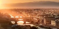 Koop de foto Florence met de brug Ponte Vecchio in de zonsondergang. van Voss fotografie op canvas, aluminium dibond, (ingelijste) fotoprint, behang en ArtFrame, op maat geprint in Fine-Art kwaliteit.