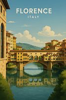 Een levendig scenario dat de romantische sfeer van Florence ontvouwt, met felle kleuren en de majestueuze Ponte Vecchio die elegant de kalme rivier overspant. De glooiende heuvels op de achtergrond en de charmante gebouwen stralen een vredige sereniteit uit. Ideaal voor de woonkamer om een uitnodigende en inspirerende sfeer te creëren.