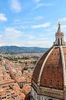 Mooi uitzicht op de grote koepel van de Duomo van Florence met vergezicht van de stad richting bergen.