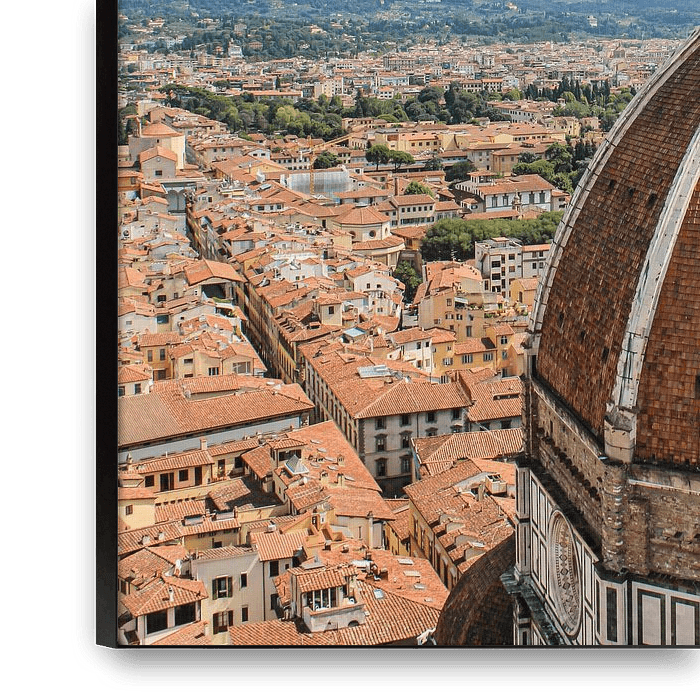 Mooi uitzicht op de grote koepel van de Duomo van Florence met vergezicht van de stad richting bergen.