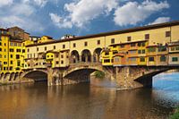Blick über den Fluss Arno zur Brücke Ponte Veccchio, Florenz, Toskana, Mittelitalien, Italien, Europa