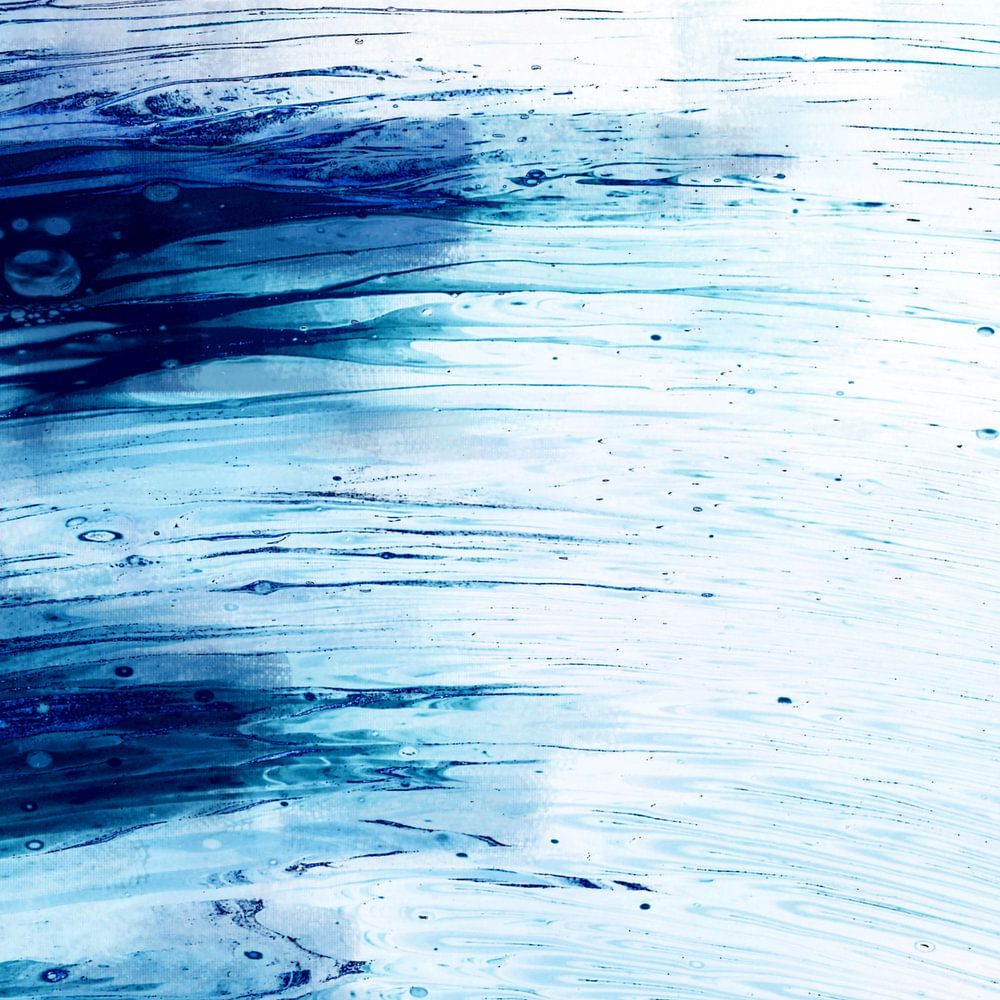 Flow III abstract digitale gouache schilderij in blauwe tinten