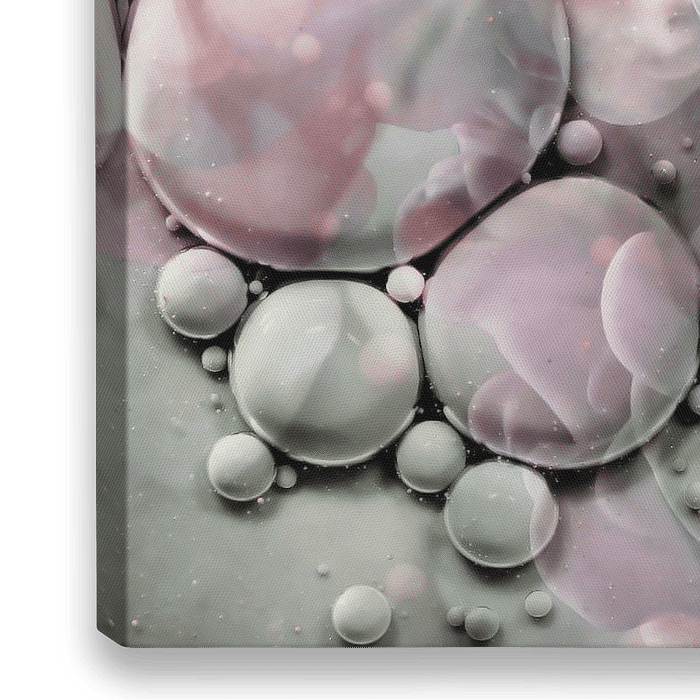 Abstracte kunst met verf en oliedruppels in water, zacht groen en oudroze tinten met lila en paars. Fantasie mixed media.