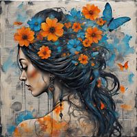 Schilderij Flower Dream 63.91 - een schilderij uit een reeks schilderijen over dromen, kleuren, vlinders en bloemen.
