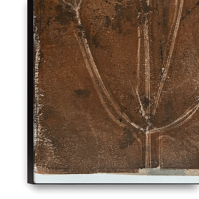 Dit specifieke werk is geïnspireerd op de bloemen in een van de mooiste tuinen van Nederland: Proeftuin Linschoten. De aardetinten geven een warme en natuurlijke sfeer.