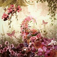 De zomer en de warmte zijn in een bloemrijke omgeving in deze krachtige collage herkenbaar.