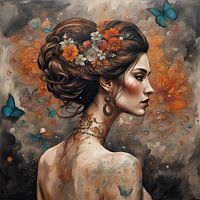 Schilderij Flower Portrait 50.80 - een schilderij uit een reeks schilderijen over dromen, kleuren, vlinders en bloemen.