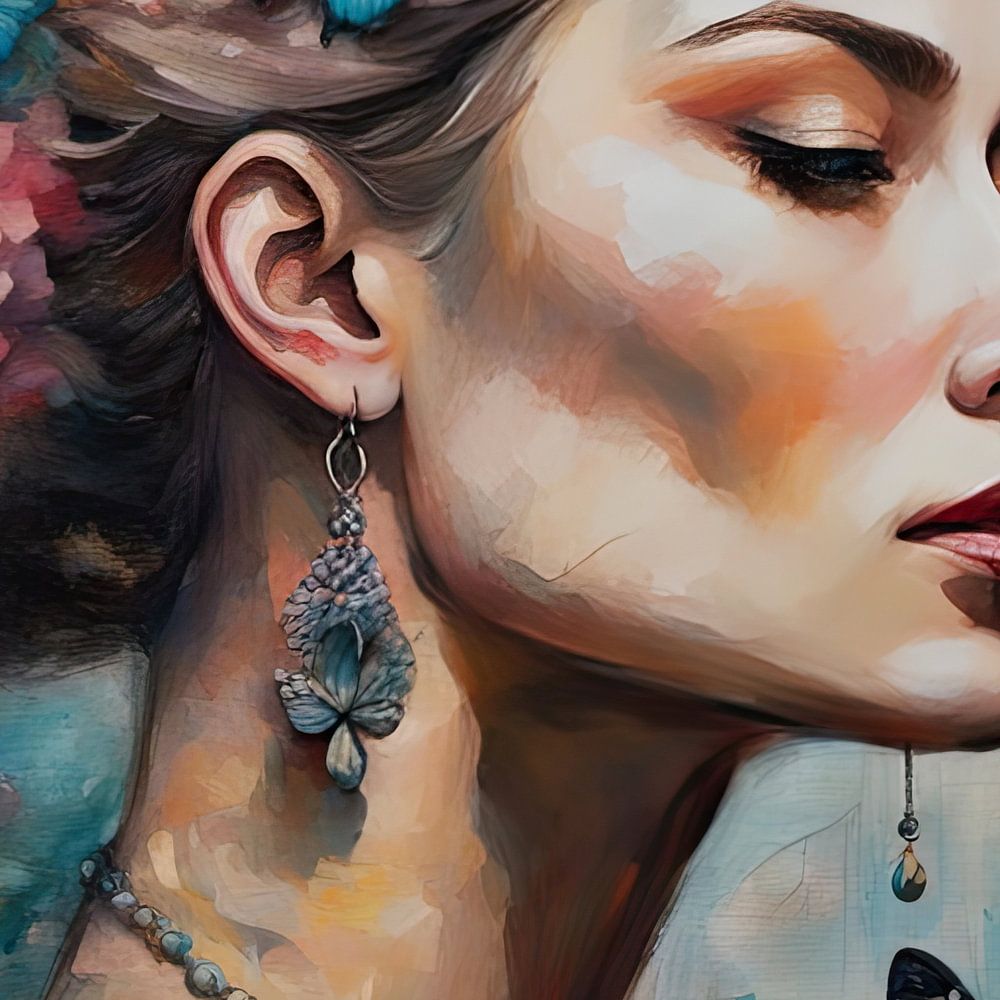 Schilderij Flower Portrait 72.73 - een schilderij uit een reeks schilderijen over dromen, kleuren, vlinders en bloemen.