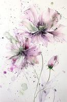 Dit kunstwerk, genaamd "Flower Power", straalt levendigheid uit met een waterverf bloem in zachte pastelkleuren van zacht paars en groen. De bloem lijkt te dansen op het papier, haar bloemblaadjes wiegen op een denkbeeldig briesje. De pastelkleuren brengen een gevoel van vreugde en vitaliteit, waardoor een sfeer van energieke kracht ontstaat. Elke penseelstreek vangt de natuurlijke pracht en dynamiek van de bloem op een speelse en kleurrijke manier. Dit kunstwerk viert de schoonheid van de natuur en nodigt uit tot een viering van levenskracht en vreugde, vastgelegd in een levendige en uitbundige compositie.