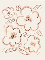 Schets van abstracte bloemen in zwart en wit op een beige achtergrond.