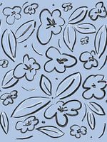 Abstracte schets van bloemen en bladeren op een licht blauwe achtergond. Moderne Boho illustratie.