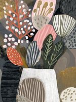 Details: bloemen, vaas, moderne kunst, kleurrijk, design, natuur, bladeren, roze, groen, wit