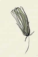 Dit digitale werk is gebaseerd op een zomerbloem in het wild, maar een geabstraheerde vorm. De bloem is in één vloeiende lijn neergezet (one-line drawing) en daarna geaccentueerd met grijsgroene kleurige accenten.