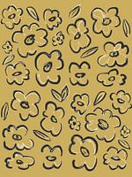 Abstract geschetste bloemen in zwart en wit op een donker oker gele achtergrond. Modern Boho Stijl.