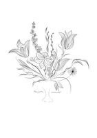 Illustratie van een surrealistisch portret met bloemen en planten. Uitgevoerd in zwart en wit. Bloemen in je hoofd!