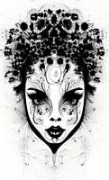 Mooi zwart wit en contrast tussen het gezicht en het haar.