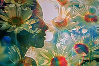 Flowerpower digitale fantasiewereld met fictieve personen in kleurrijke bewerkingen