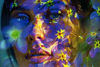 Flowerpower digitale fantasiewereld met fictieve personen in kleurrijke bewerkingen