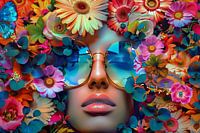 Flowerpower digitale fantasiewereld met fictieve personen in kleurrijke bewerkingen