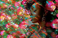 Digitaal schilderachtig beeld van fictief Flowerpower Fantasie model