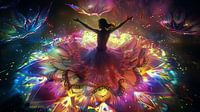 Flowerpower digitale fantasiewereld met fictieve personen in kleurrijke bewerkingen