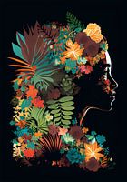 Prachtig minimalistisch profiel van een vrouwengezicht, gevuld met een weelderige mix van bloemen en bladeren, plantenstructuren en bloemenpatronen. Dynamische compositie van mooie gedetailleerde, organische vormen en evenwichtige zowel koele als warme kleurcontrasten: Flowerpunk: Lush Earth!
