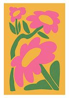 Knalroze bloemen tegen een gele achtergrond. Hip en trendy.