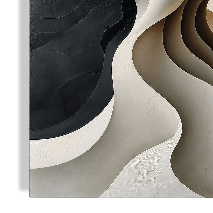 Abstracte figuratieve kunst met vloeiende vormen in een gelaagd 3D effect en een ruwe textuur.