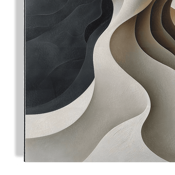 Abstracte figuratieve kunst met vloeiende vormen in een gelaagd 3D effect en een ruwe textuur.