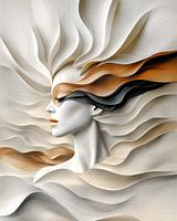 Abstracte figuratieve kunst in aardetinten met vloeiende golvende vormen in een gelaagd 3D effect en sculptuur stijl.