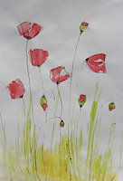 In Fluisterende Klaprozen ontvouwt zich een moment van verstilling en zachtheid. De klaprozen wiegen subtiel op hun lange, fijne stelen – als een fluistering van de natuur die je uitnodigt om even stil te staan.