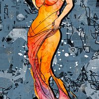 Het oranjerood dat overheerst, straalt een passie uit die kenmerkend is voor mijn werk, en brengt een gevoel van beweging en vitaliteit over. Dit kunstwerk verkent de grenzen van media, waarbij de gefragmenteerde elementen zowel een moderne digitale esthetiek als een nostalgisch gevoel voor het handgemaakte belichamen. Het is een stuk dat niet alleen een aanwezigheid opeist aan de muur waar het hangt, maar ook in de gedachten van de kijker lang nadat er naar gekeken is.
