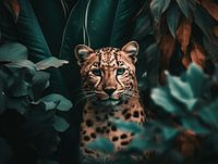 "Fluistering van de Wildernis" is een adembenemende foto die een luipaard in volle glorie toont, omgeven door een dromerige sluier van bladeren. De turkooizen en aardetinten van de vegetatie vormen een prachtige achtergrond die de katachtige elegantie en wilde geest van het luipaard accentueert. Zijn intense blik en perfect geplaatste vlekken zijn hypnotiserend en roepen een gevoel van de ongerepte natuur op. Dit stuk zou niet misstaan in een collectie van fijnproevers van natuurfotografie of als een statement piece in een stijlvol interieur.
