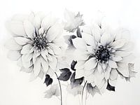 "Fluistering van de Winterdahlia" is een serene voorstelling van de dahlia als symbool voor rust en kalmte. De zachte grijstinten en het subtiele spel van licht en schaduw creëren een zachte harmonie die de stilte van de winter echoot. De focus ligt op de delicate textuur van de bloemblaadjes en de diepte van de bloemen, die samen een gevoel van introspectie en contemplatie uitnodigen.
