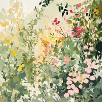 Fluistering van een Engelse tuin is een abstract werk dat de charme van klassieke tuinen vertaalt naar een minimalistisch kleurenpalet. Neutrale tinten worden afgewisseld met levendige toetsen van roze en geel, terwijl dikke penseelstreken en subtiele lijnen een gevoel van natuurlijke rust uitstralen. Het schilderij ademt ingetogen elegantie en past perfect in een modern, licht interieur waar sereniteit en verfijning samenkomen.