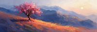 'Fluisteringen van de Lente' is een levendige interpretatie van een eenzame bloesemboom, badend in het warme licht van de ondergaande zon. De levendige roze en perziktinten van de bloesems contrasteren prachtig met het glooiende landschap en de vervaagde bergen op de achtergrond. Deze kunstwerken brengen een gevoel van hernieuwing en…