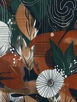 Whispers of Nature is een levendig abstract kunstwerk dat de schoonheid en energie van de natuur combineert met dynamische grafische elementen. De compositie bestaat uit organische vormen en krachtige lijnen die het gevoel van een levendig, constant evoluerend ecosysteem oproepen. De diepe groene en oranje tinten, vermengd met subtiele…