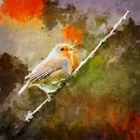 Fluitend roodborstje op een tak (kunst) van Art by Jeronimo