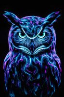Ontdek deze betoverende afbeelding van een fluorescerende uil, die perfect past in elke moderne en futuristische inrichting. De combinatie van levendige blauwe en paarse tinten creëert een dynamisch en visueel verbluffend effect dat de aandacht trekt en de verbeelding prikkelt. Deze unieke kunstwerk is ideaal voor kantoren, slaapkamers of elke ruimte waar een vleugje futurisme gewenst is. Het samenspel van licht en kleur maakt deze afbeelding niet alleen een visueel meesterwerk, maar ook een inspirerend middelpunt in uw interieur. Perfect voor liefhebbers van moderne kunst en dieren.