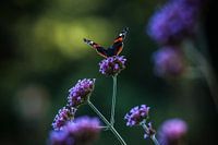 De vlinder laat z'n mooie vleugels zien, klaar om weg te vliegen, vrij te zijn in een kleurrijke setting. De kleuren en de scherptediepte geeft een mooi contrasterende foto.