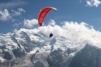 Een paraglider (parapente) zweeft bij de Mont Blanc bij Chamonix. De thermiek die langs de helling van de Mont Blanc optreedt zorgt ervoor dat de paraglider hang kan blijven zweven. De opname is gemaakt vanaf Le Brevent op 2525 meter. Deze berg ligt tegenover de Mont Blanc, waardoor je een goed uitzicht op de Mont Blanc hebt. Le…